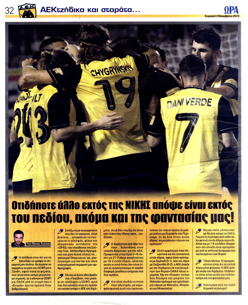 ΑΘΛΗΤΙΚΗ ΩΡΑ ΤΩΝ ΣΠΟΡ - 3 Νοεμβρίου 2019
