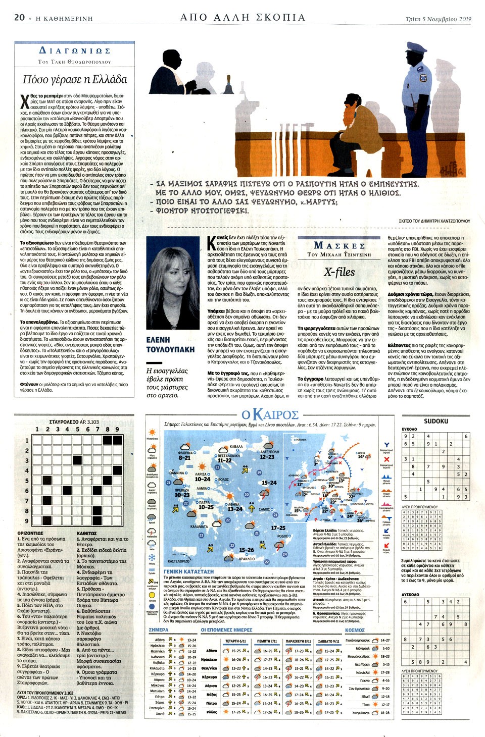 ΚΑΘΗΜΕΡΙΝΗ - 5 Νοεμβρίου 2019