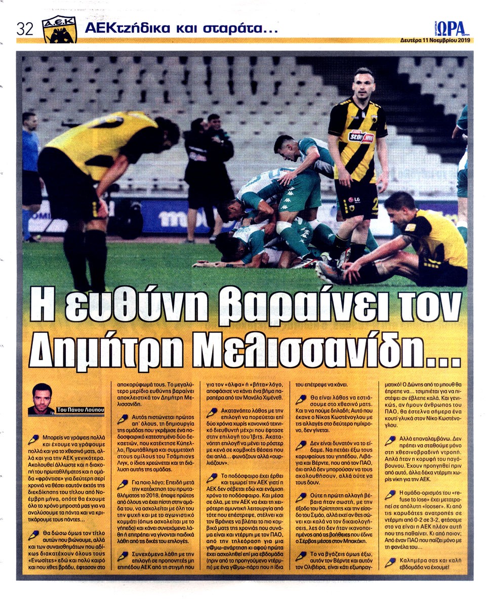 ΑΘΛΗΤΙΚΗ ΩΡΑ ΤΩΝ ΣΠΟΡ - 11 Νοεμβρίου 2019