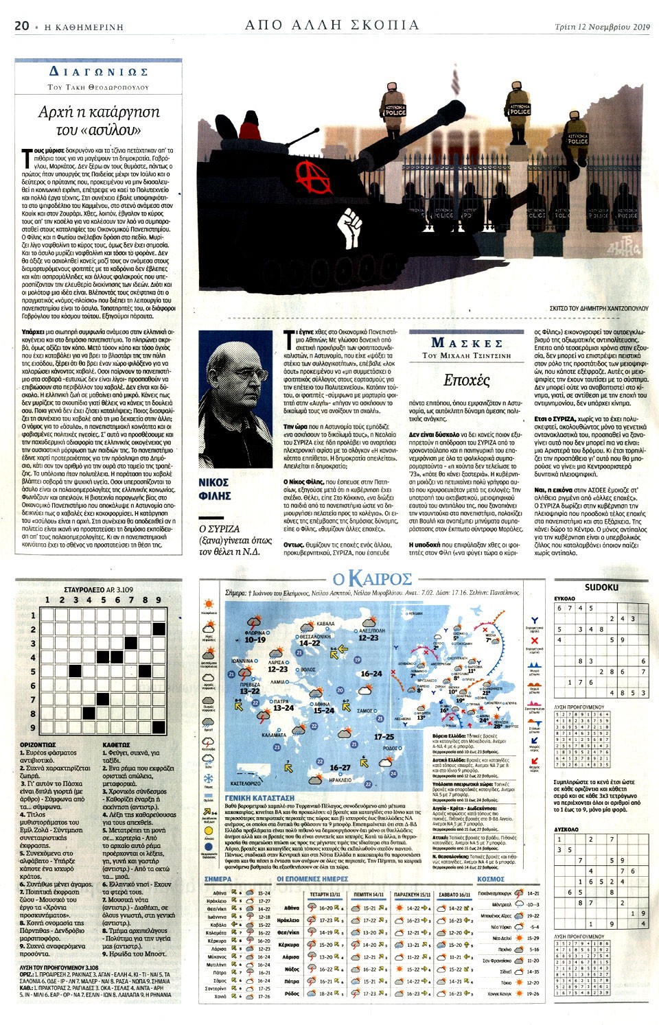 ΚΑΘΗΜΕΡΙΝΗ - 12 Νοεμβρίου 2019