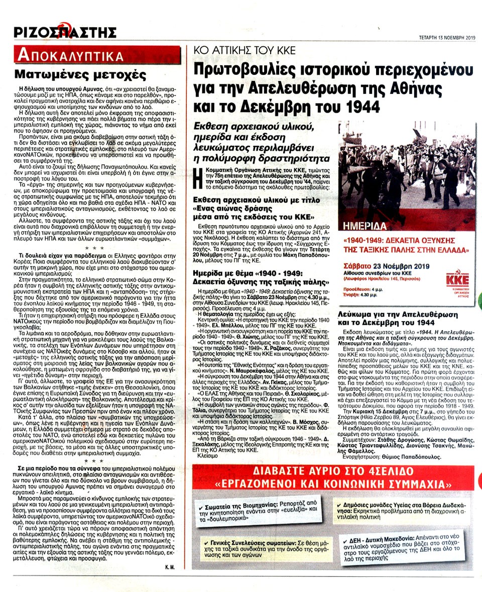 ΡΙΖΟΣΠΑΣΤΗΣ - 13 Νοεμβρίου 2019