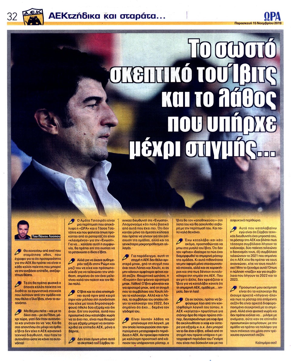 ΑΘΛΗΤΙΚΗ ΩΡΑ ΤΩΝ ΣΠΟΡ - 15 Νοεμβρίου 2019
