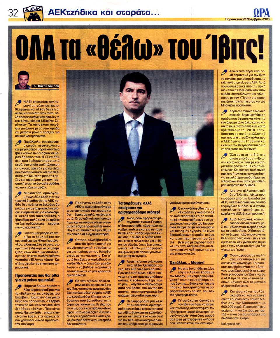 ΑΘΛΗΤΙΚΗ ΩΡΑ ΤΩΝ ΣΠΟΡ - 22 Νοεμβρίου 2019
