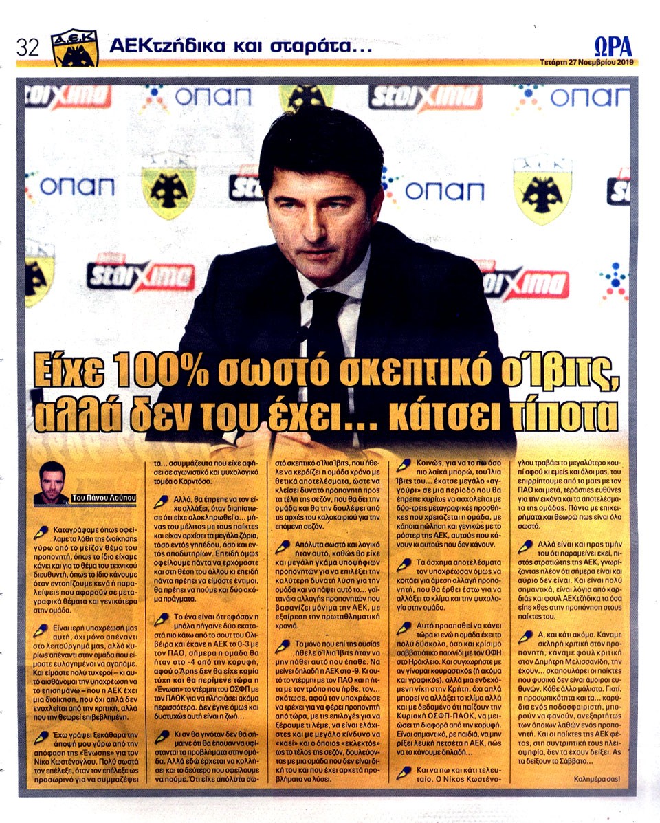 ΑΘΛΗΤΙΚΗ ΩΡΑ ΤΩΝ ΣΠΟΡ - 27 Νοεμβρίου 2019