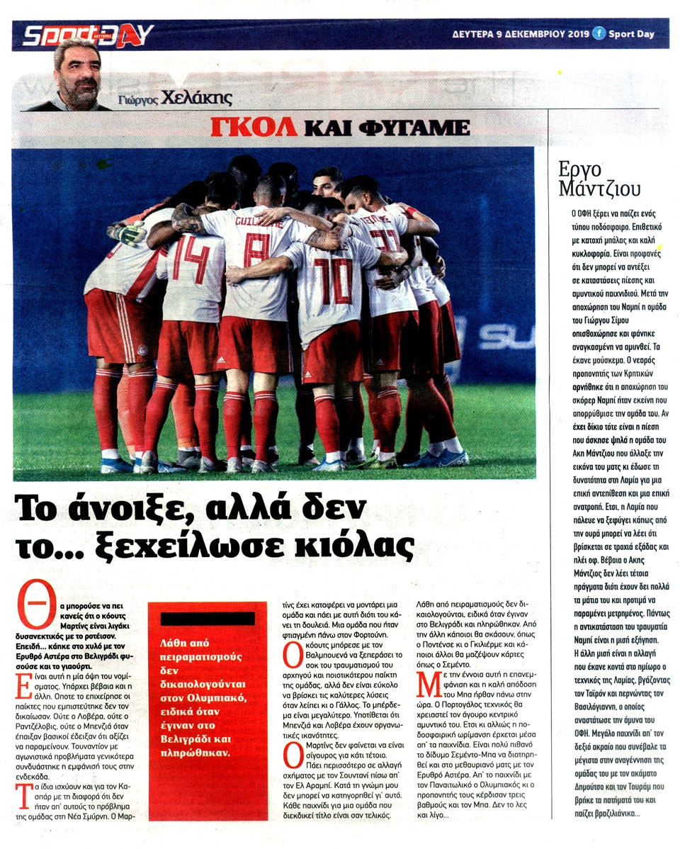 SPORTDAY - 9 Δεκεμβρίου 2019