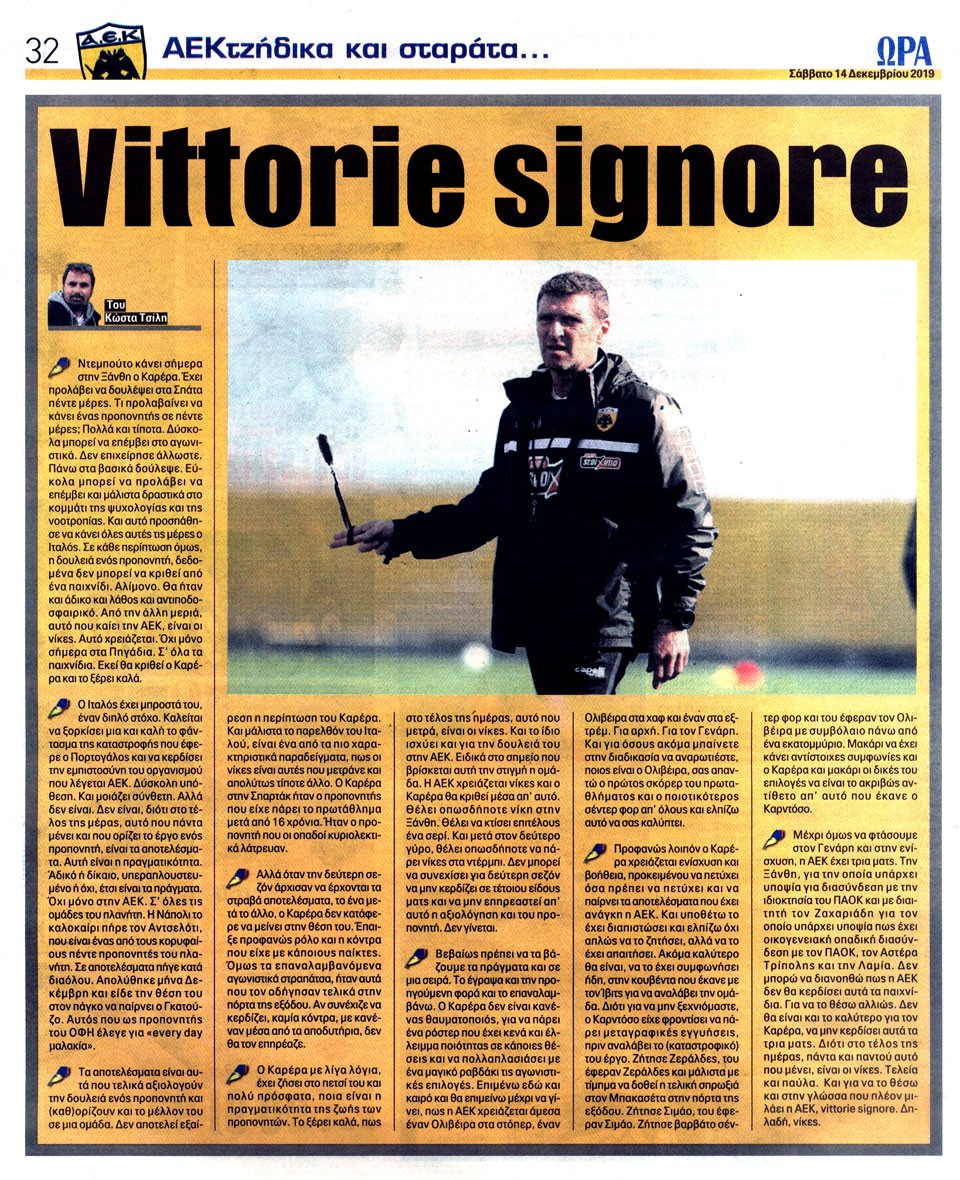 ΑΘΛΗΤΙΚΗ ΩΡΑ ΤΩΝ ΣΠΟΡ - 14 Δεκεμβρίου 2019