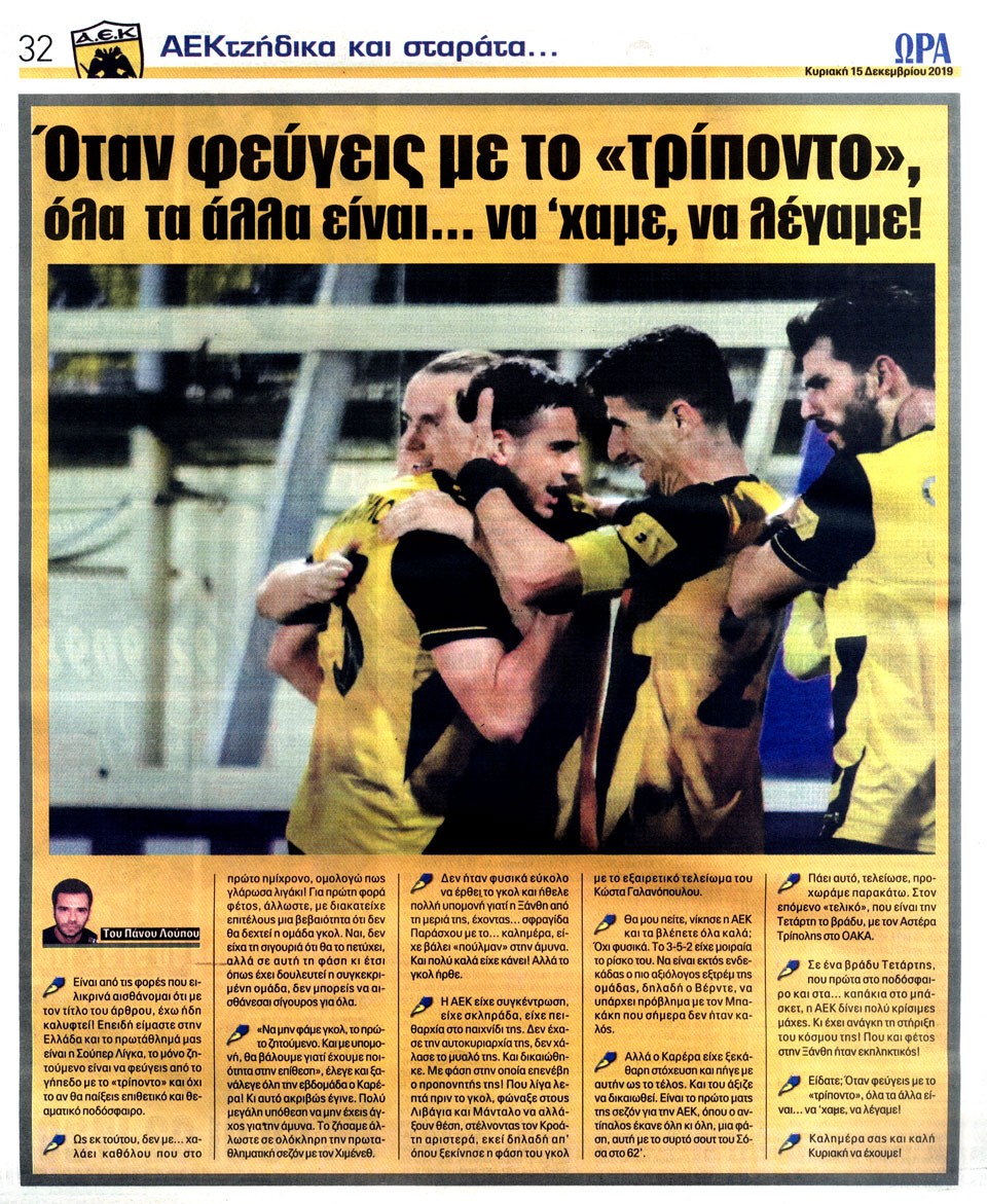 ΑΘΛΗΤΙΚΗ ΩΡΑ ΤΩΝ ΣΠΟΡ - 15 Δεκεμβρίου 2019
