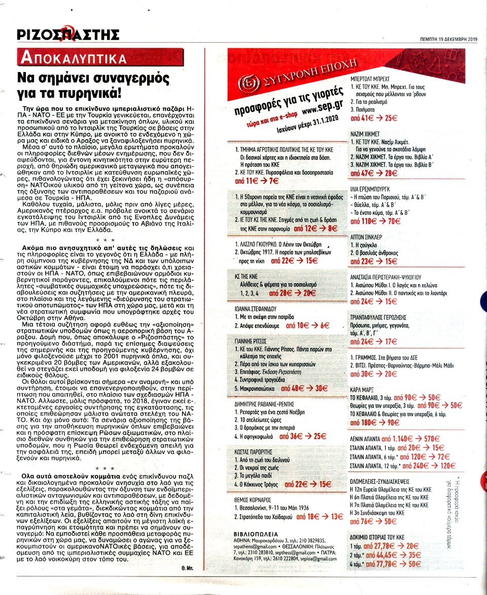 ΡΙΖΟΣΠΑΣΤΗΣ - 19 Δεκεμβρίου 2019