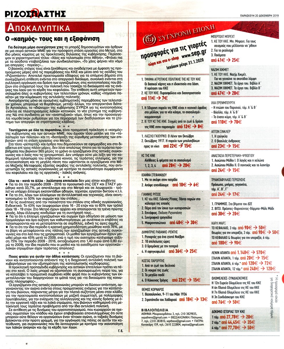 ΡΙΖΟΣΠΑΣΤΗΣ - 20 Δεκεμβρίου 2019
