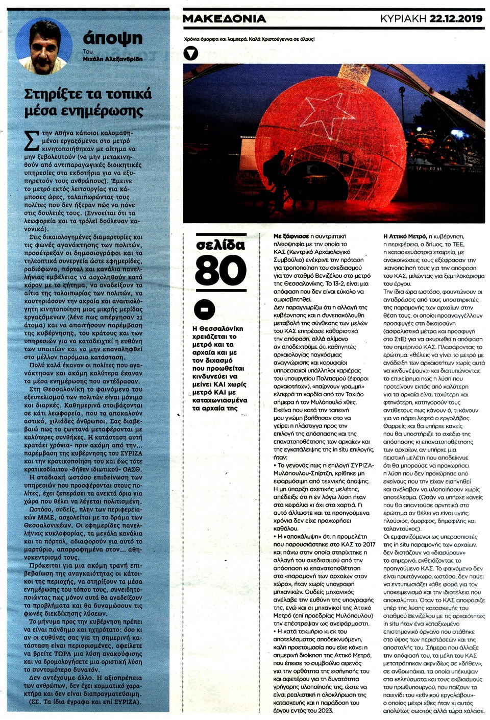 ΜΑΚΕΔΟΝΙΑ ΤΗΣ ΚΥΡΙΑΚΗΣ - 22 Δεκεμβρίου 2019