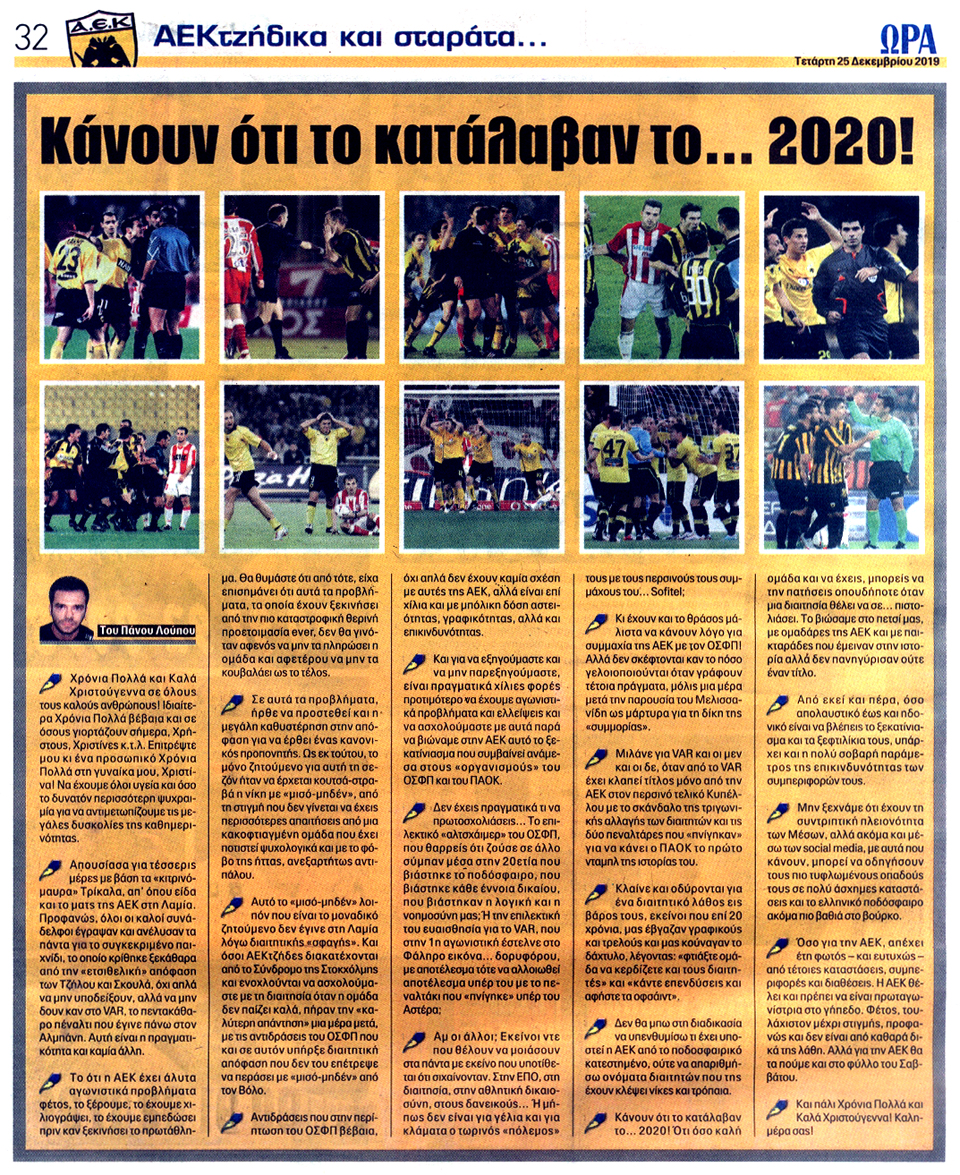 ΑΘΛΗΤΙΚΗ ΩΡΑ ΤΩΝ ΣΠΟΡ - 25 Δεκεμβρίου 2019