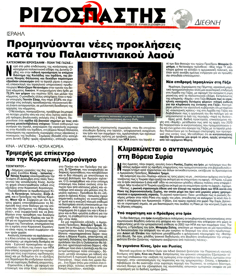 ΡΙΖΟΣΠΑΣΤΗΣ - 28 Δεκεμβρίου 2019