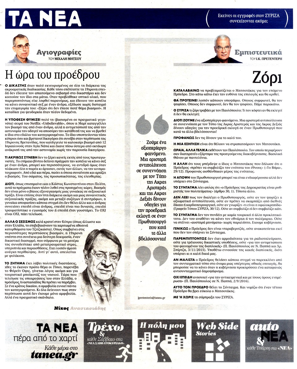 ΤΑ ΝΕΑ - 3 Ιανουαρίου 2020