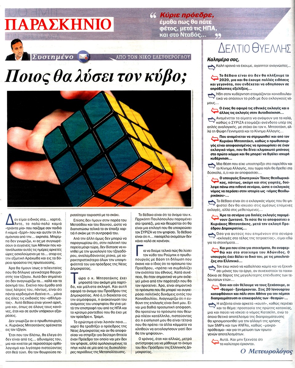 ΤΟ ΠΑΡΑΣΚΗΝΙΟ - 4 Ιανουαρίου 2020