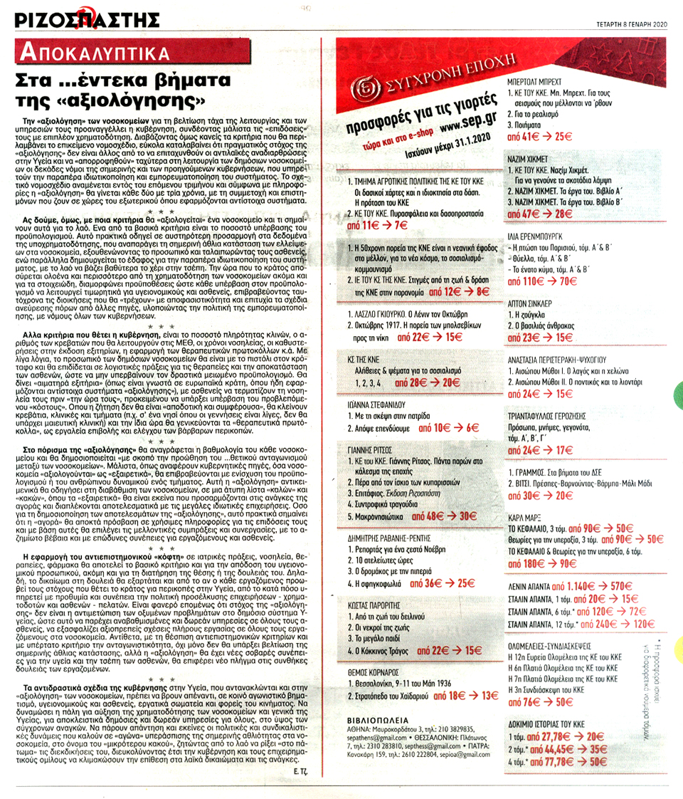 ΡΙΖΟΣΠΑΣΤΗΣ - 8 Ιανουαρίου 2020