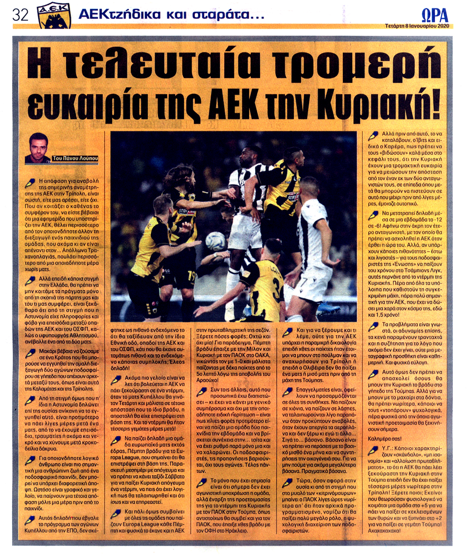ΑΘΛΗΤΙΚΗ ΩΡΑ ΤΩΝ ΣΠΟΡ - 8 Ιανουαρίου 2020