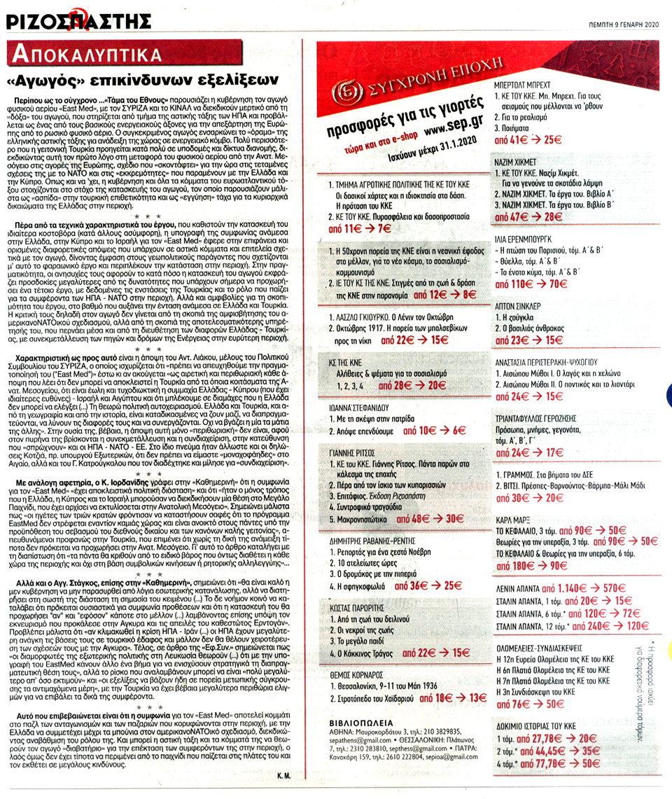 ΡΙΖΟΣΠΑΣΤΗΣ - 9 Ιανουαρίου 2020