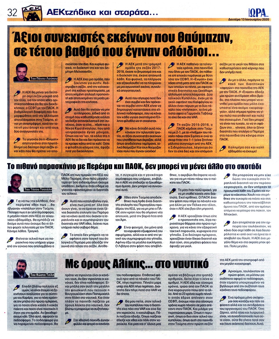 ΑΘΛΗΤΙΚΗ ΩΡΑ ΤΩΝ ΣΠΟΡ - 13 Ιανουαρίου 2020