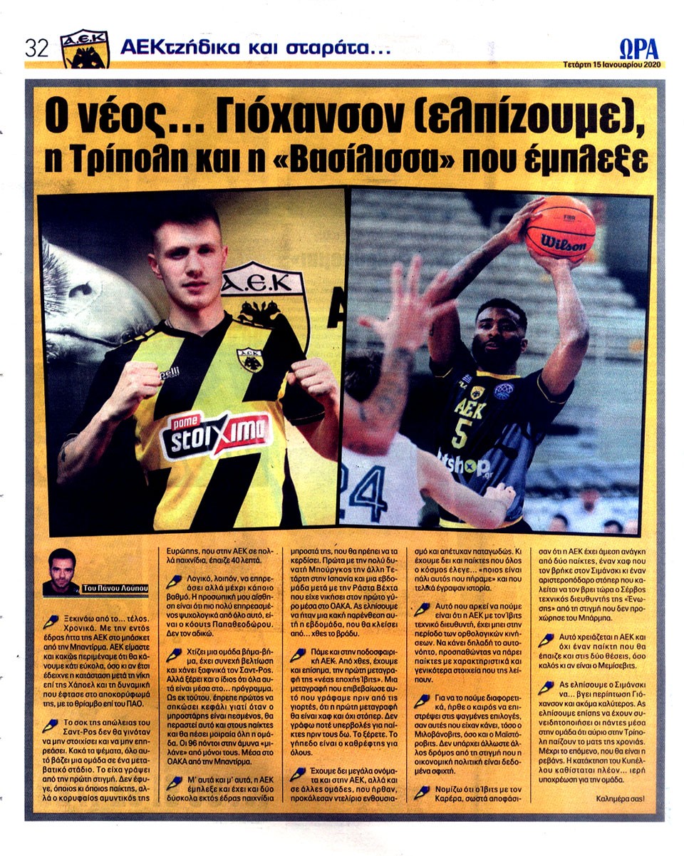ΑΘΛΗΤΙΚΗ ΩΡΑ ΤΩΝ ΣΠΟΡ - 15 Ιανουαρίου 2020
