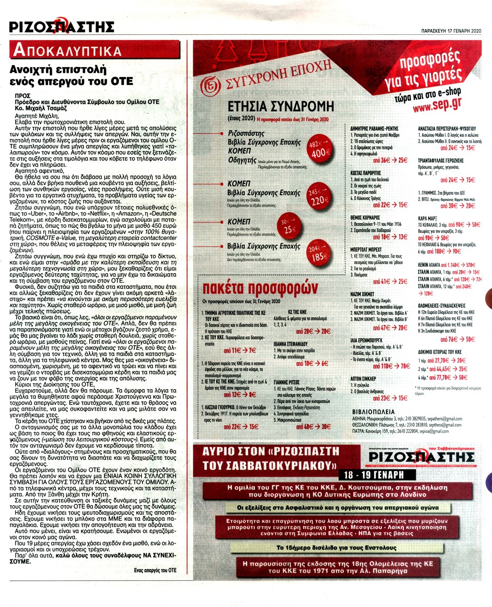 ΡΙΖΟΣΠΑΣΤΗΣ - 17 Ιανουαρίου 2020
