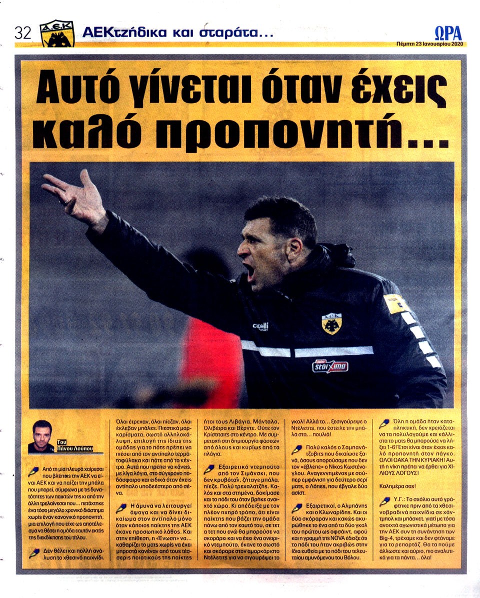 ΑΘΛΗΤΙΚΗ ΩΡΑ ΤΩΝ ΣΠΟΡ - 23 Ιανουαρίου 2020