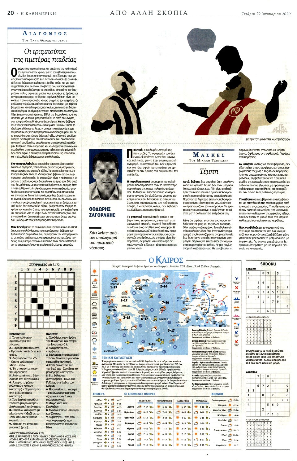 ΚΑΘΗΜΕΡΙΝΗ - 29 Ιανουαρίου 2020