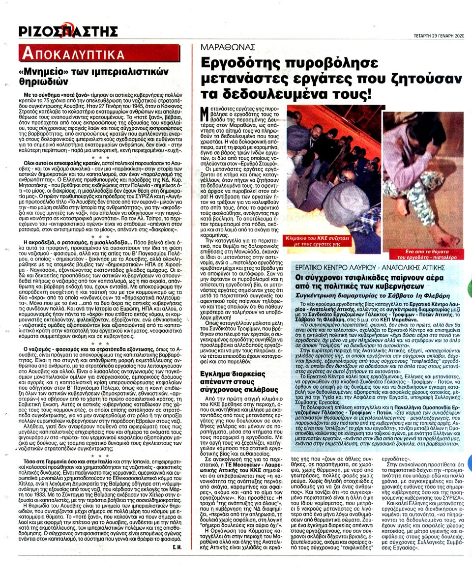 ΡΙΖΟΣΠΑΣΤΗΣ - 29 Ιανουαρίου 2020