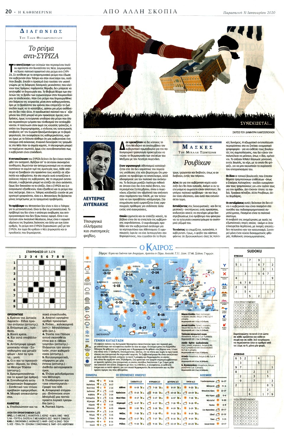 ΚΑΘΗΜΕΡΙΝΗ - 31 Ιανουαρίου 2020