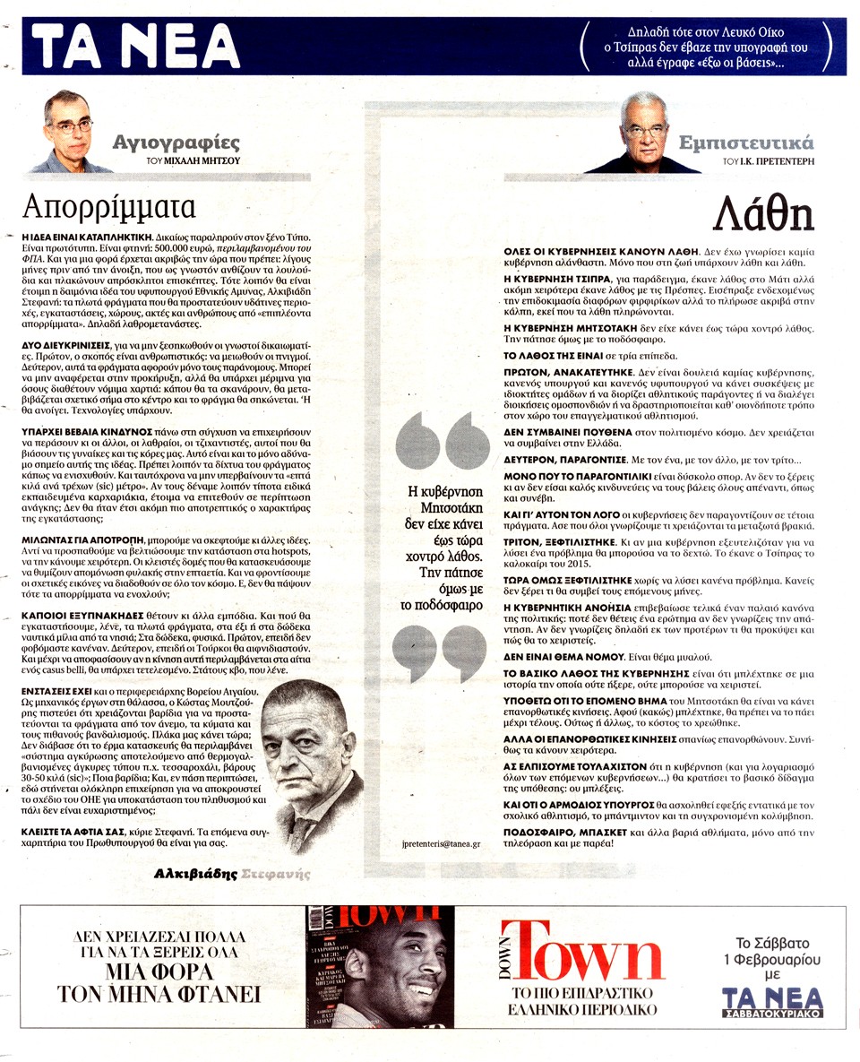 ΤΑ ΝΕΑ - 31 Ιανουαρίου 2020