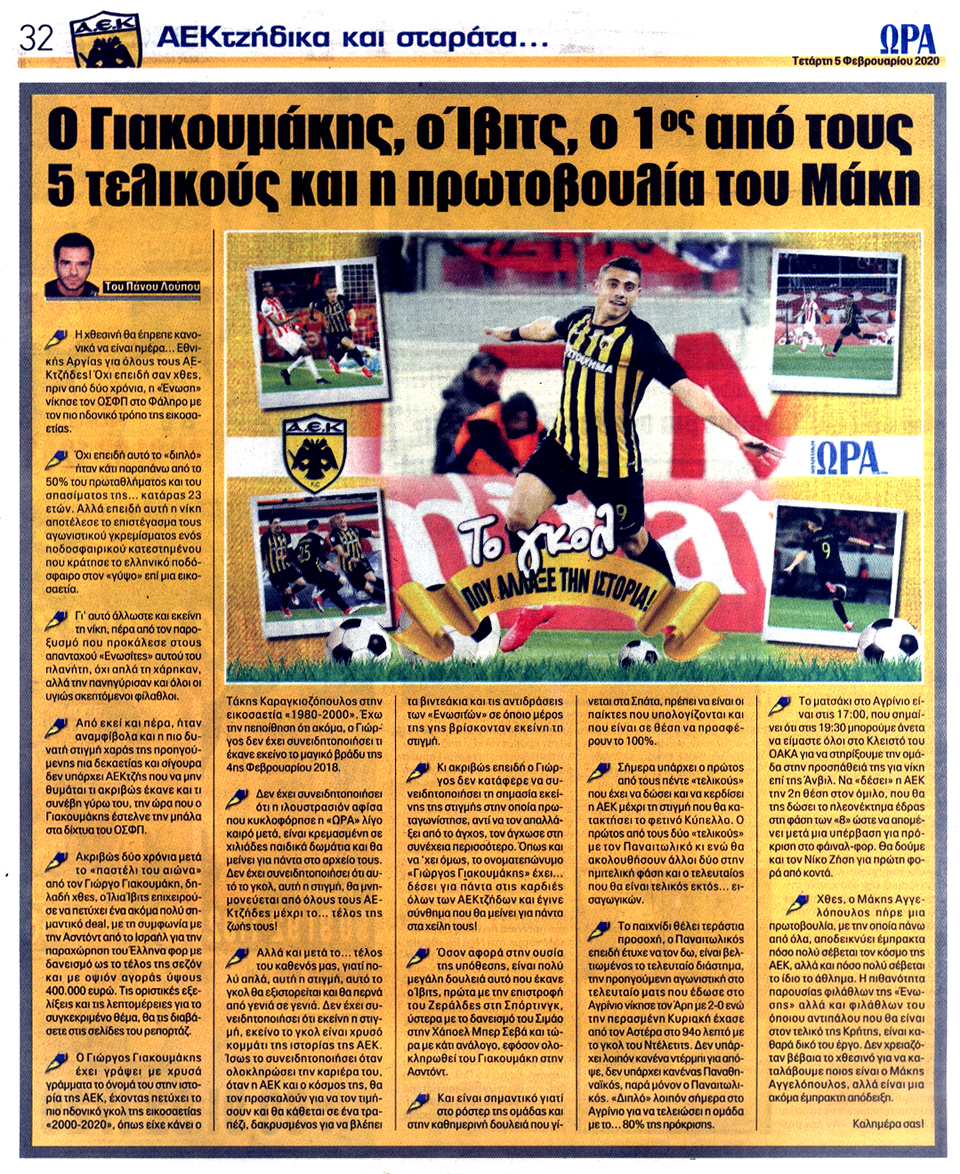 ΑΘΛΗΤΙΚΗ ΩΡΑ ΤΩΝ ΣΠΟΡ - 5 Φεβρουαρίου 2020