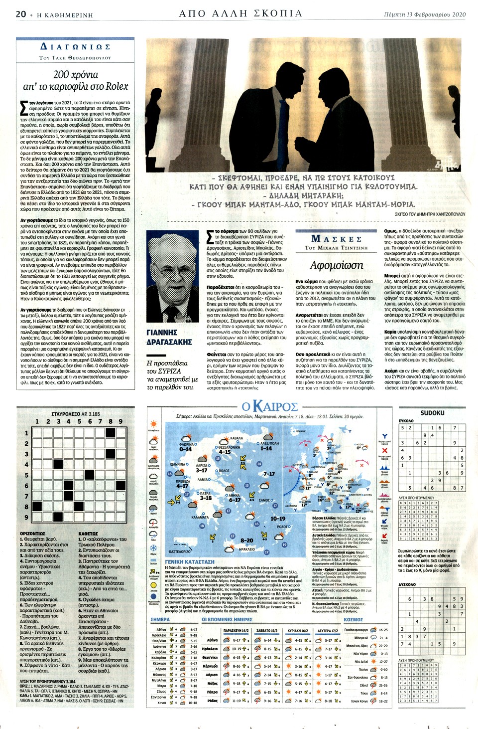 ΚΑΘΗΜΕΡΙΝΗ - 13 Φεβρουαρίου 2020