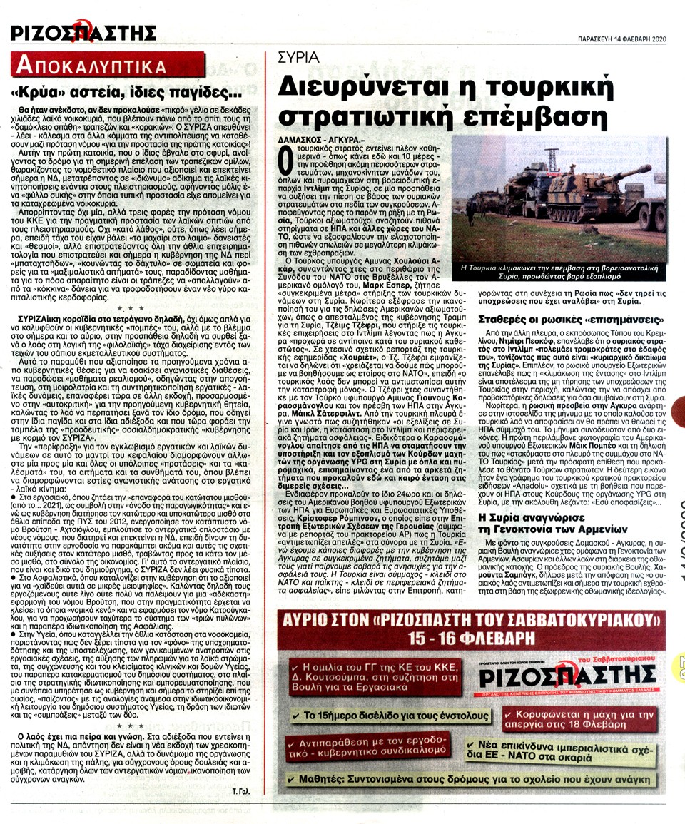 ΡΙΖΟΣΠΑΣΤΗΣ - 14 Φεβρουαρίου 2020