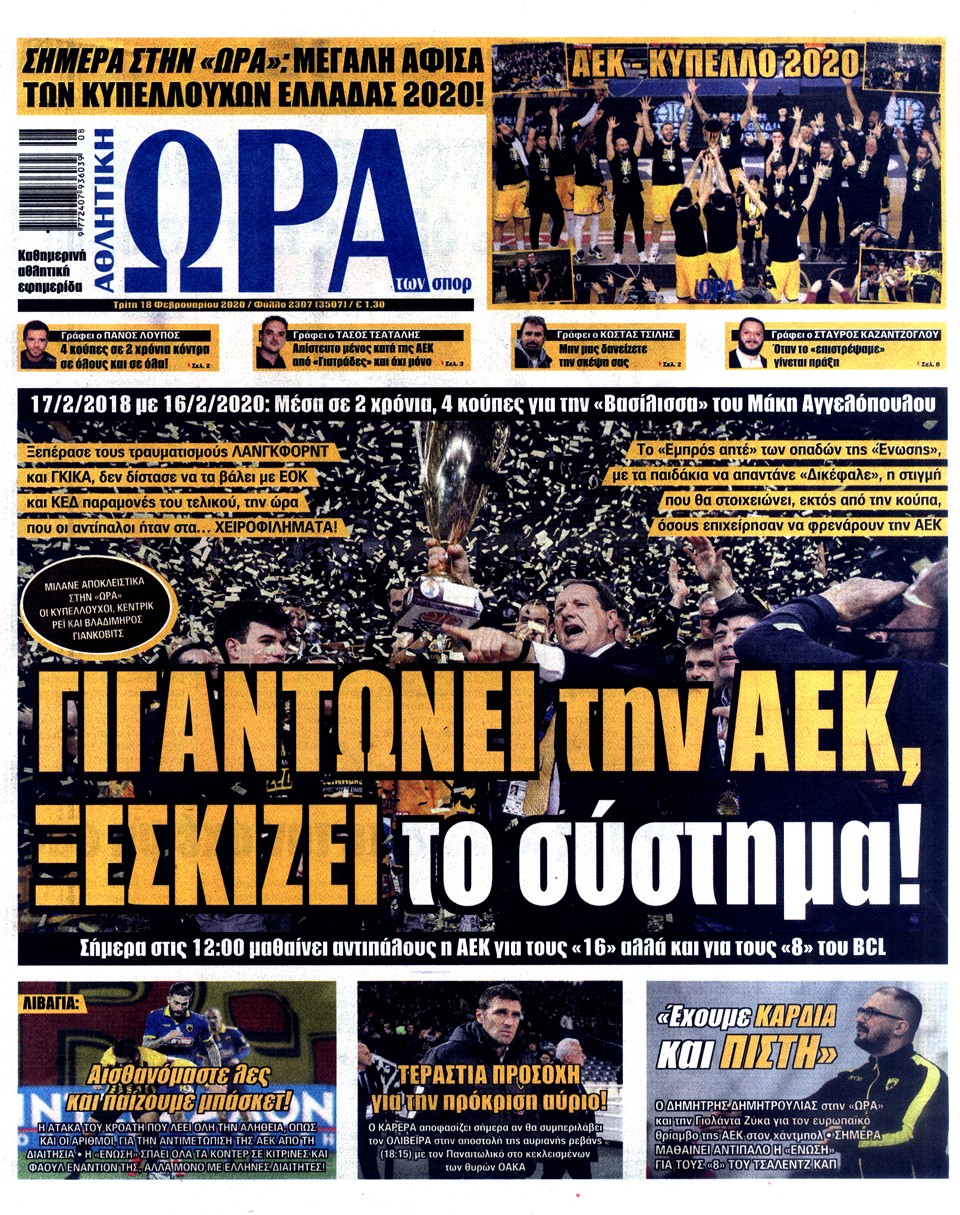 ΑΘΛΗΤΙΚΗ ΩΡΑ ΤΩΝ ΣΠΟΡ - 18 Φεβρουαρίου 2020