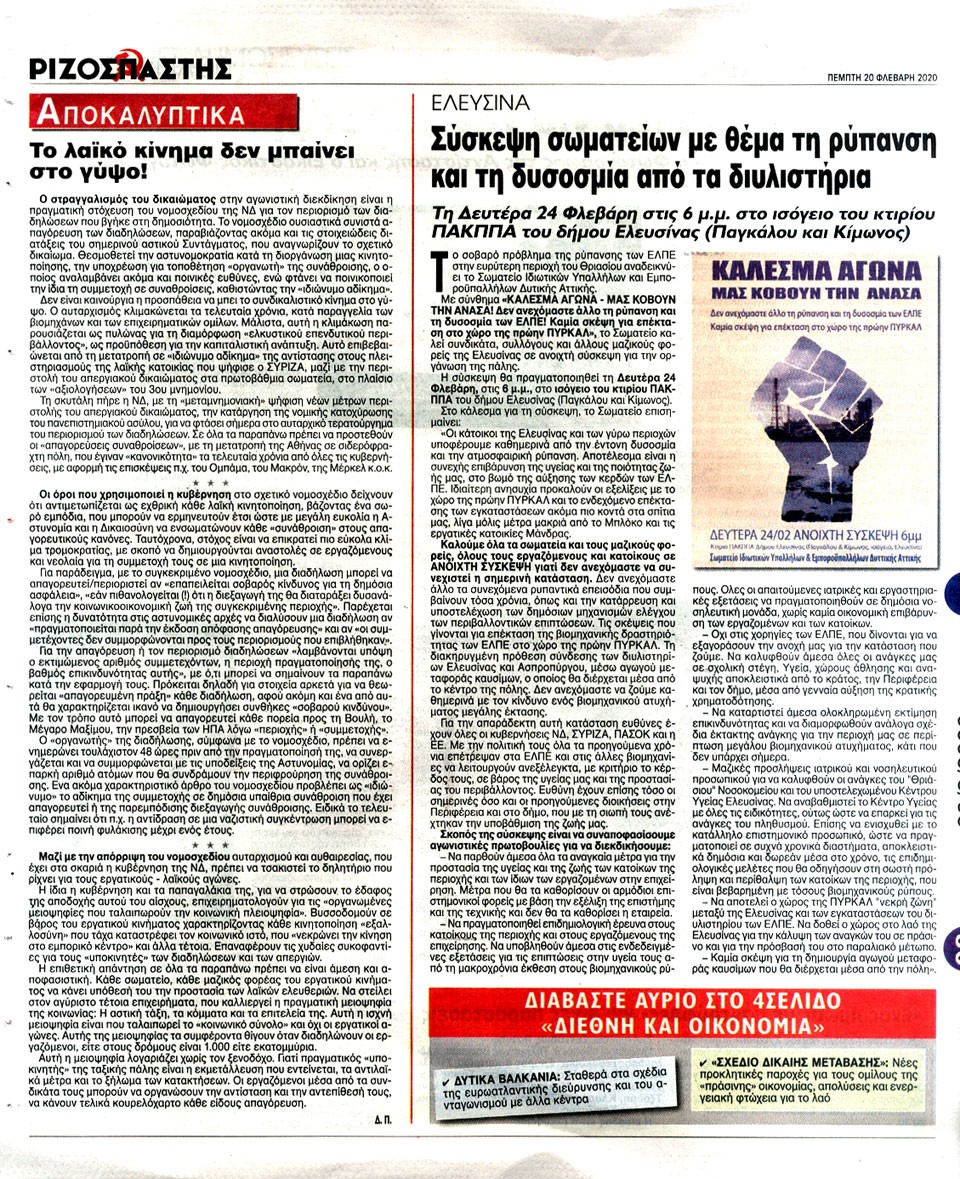 ΡΙΖΟΣΠΑΣΤΗΣ - 20 Φεβρουαρίου 2020