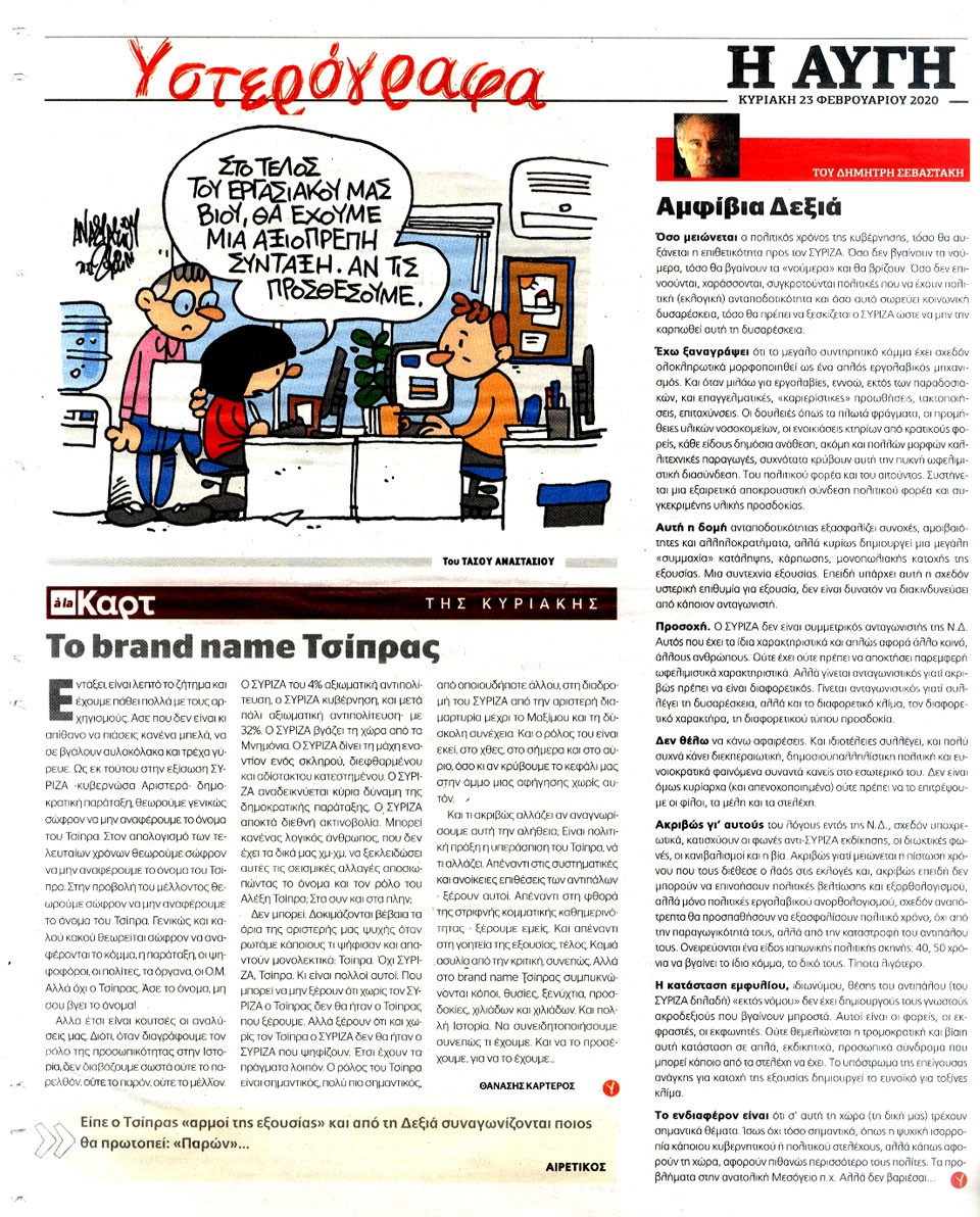 Η ΑΥΓΗ ΤΗΣ ΚΥΡΙΑΚΗΣ - 23 Φεβρουαρίου 2020