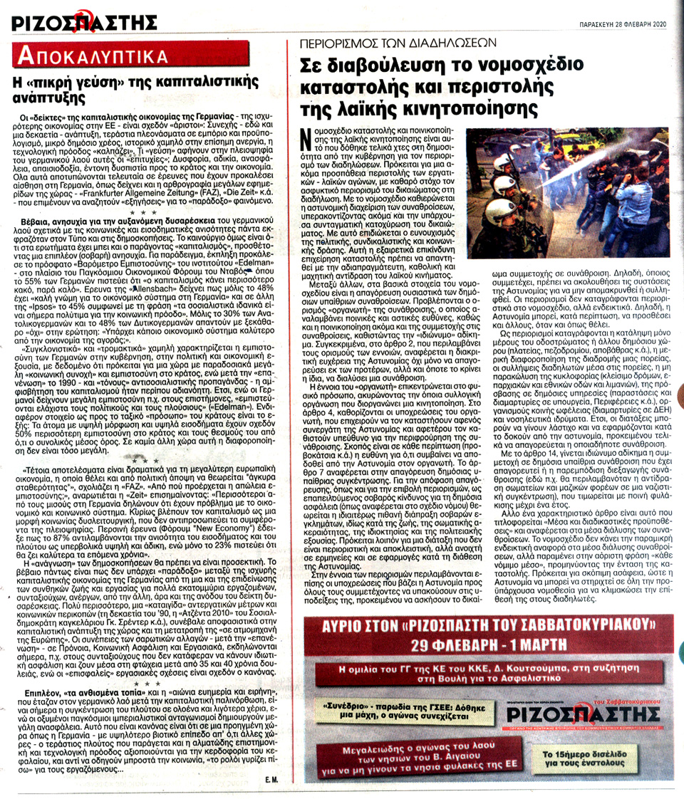 ΡΙΖΟΣΠΑΣΤΗΣ - 28 Φεβρουαρίου 2020