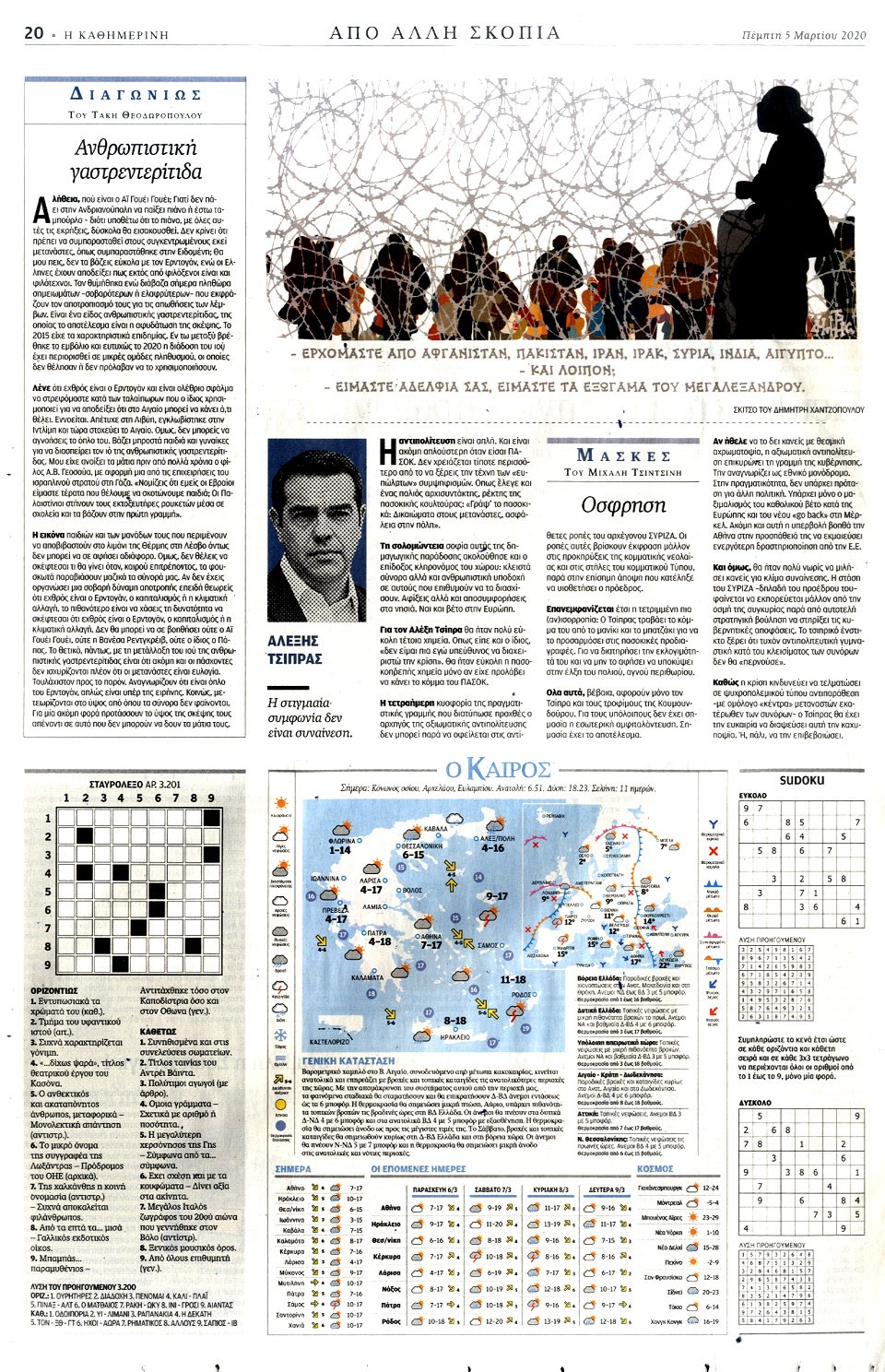 ΚΑΘΗΜΕΡΙΝΗ - 5 Μαρτίου 2020