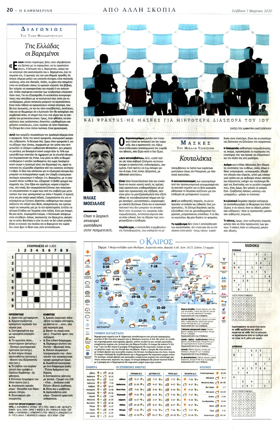 ΚΑΘΗΜΕΡΙΝΗ - 7 Μαρτίου 2020