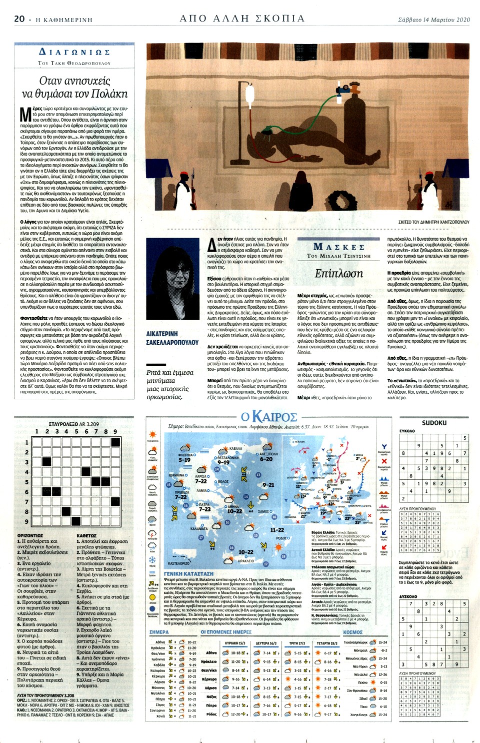 ΚΑΘΗΜΕΡΙΝΗ - 14 Μαρτίου 2020