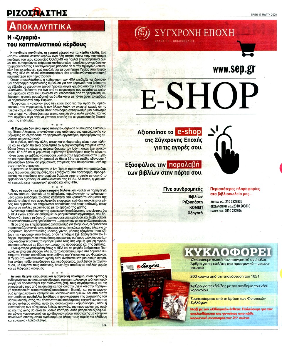 ΡΙΖΟΣΠΑΣΤΗΣ - 17 Μαρτίου 2020