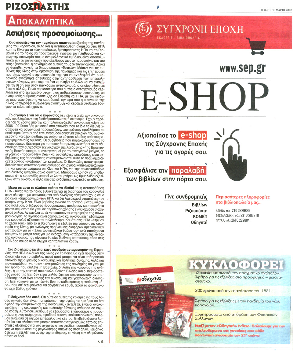 ΡΙΖΟΣΠΑΣΤΗΣ - 18 Μαρτίου 2020