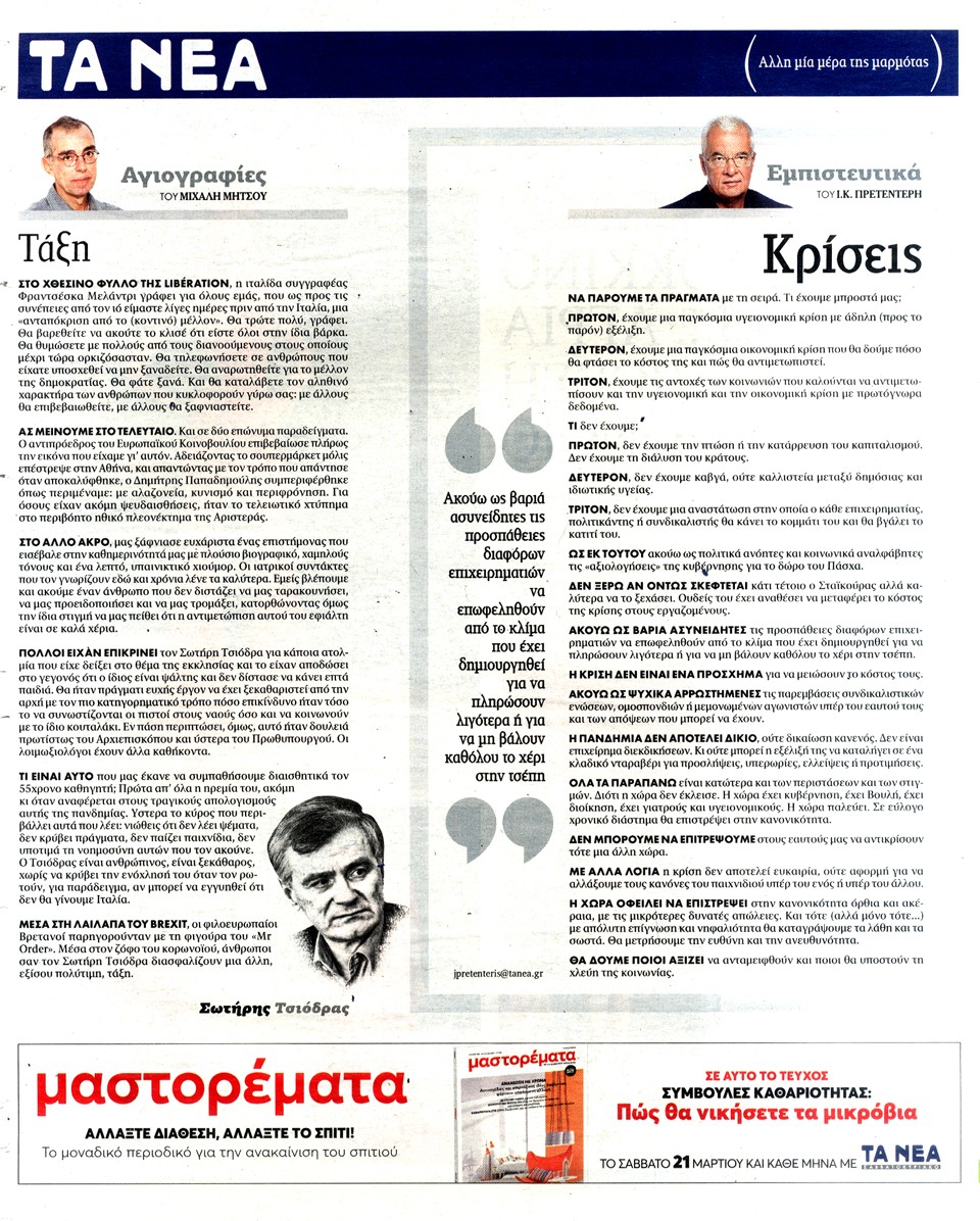 ΤΑ ΝΕΑ - 20 Μαρτίου 2020