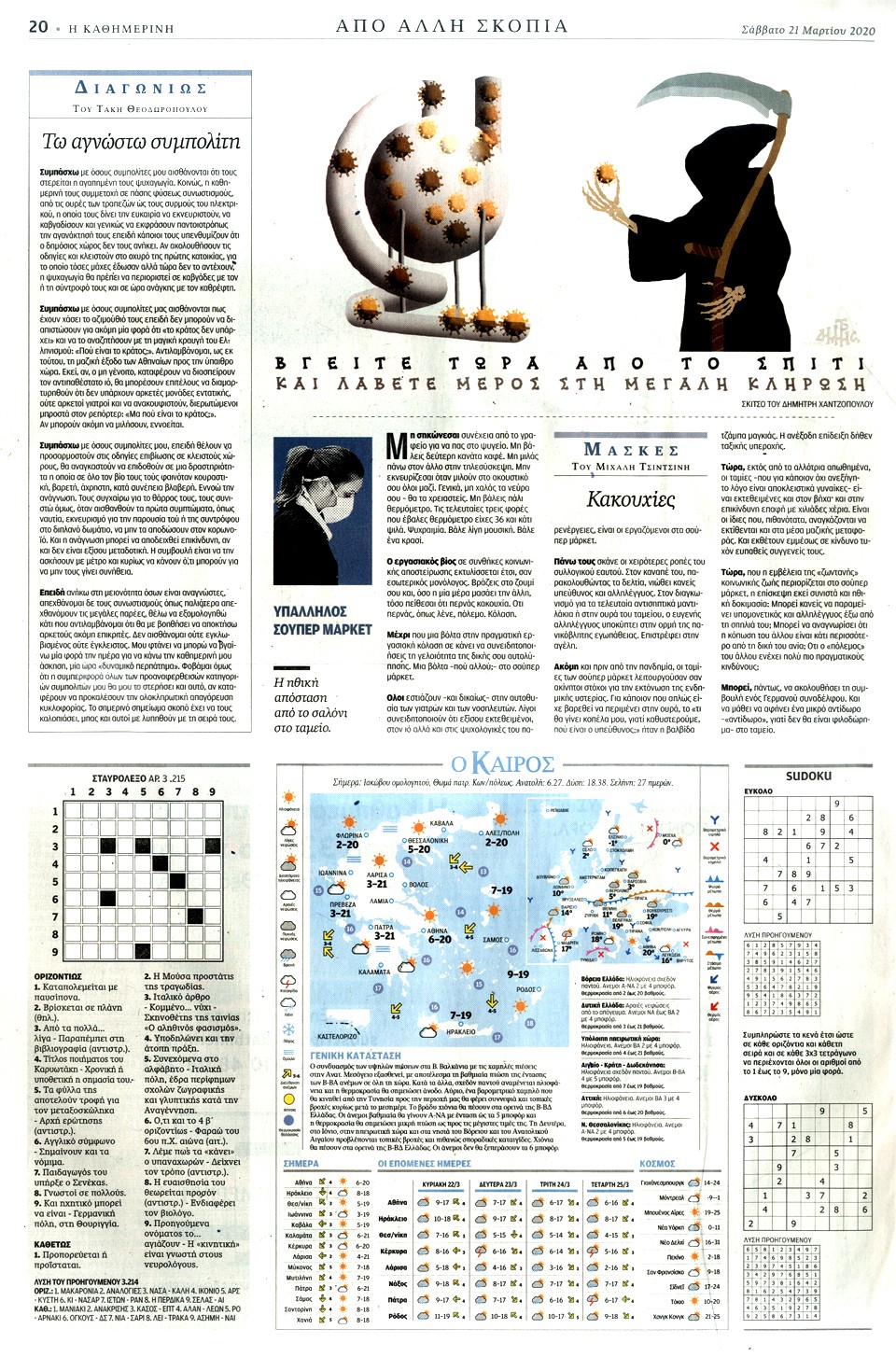 ΚΑΘΗΜΕΡΙΝΗ - 21 Μαρτίου 2020