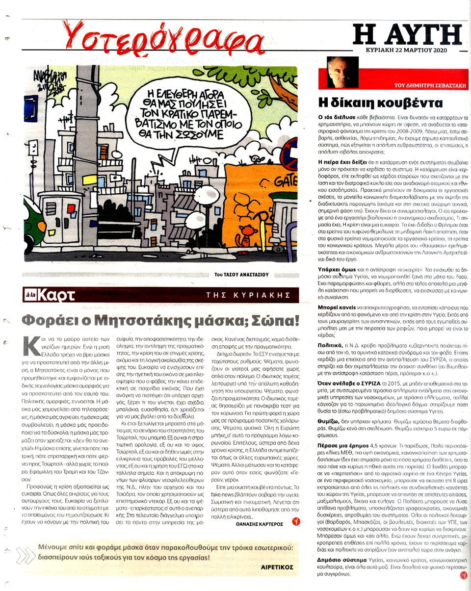 Η ΑΥΓΗ ΤΗΣ ΚΥΡΙΑΚΗΣ - 22 Μαρτίου 2020