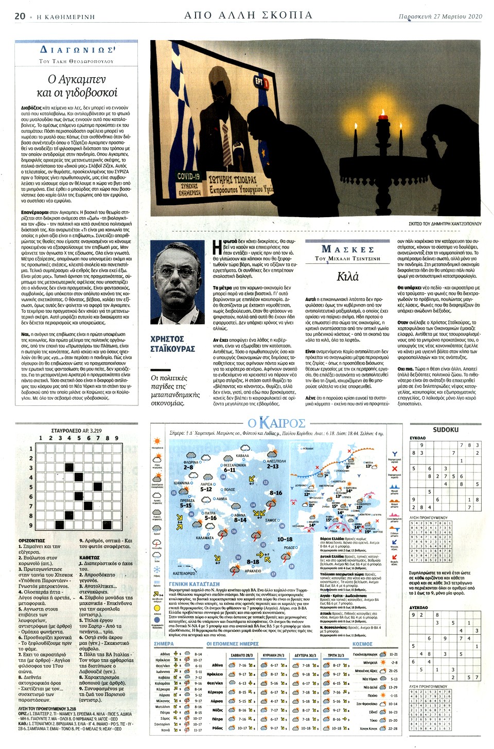 ΚΑΘΗΜΕΡΙΝΗ - 27 Μαρτίου 2020