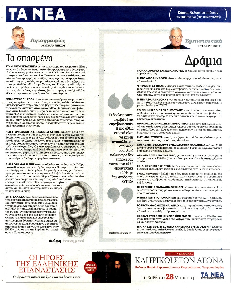 ΤΑ ΝΕΑ - 27 Μαρτίου 2020