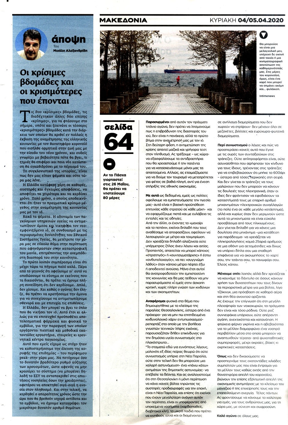 ΜΑΚΕΔΟΝΙΑ ΤΗΣ ΚΥΡΙΑΚΗΣ - 5 Απριλίου 2020