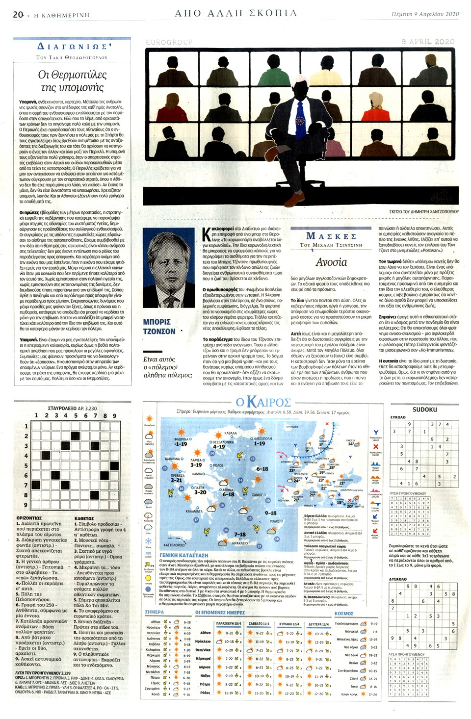 ΚΑΘΗΜΕΡΙΝΗ - 9 Απριλίου 2020