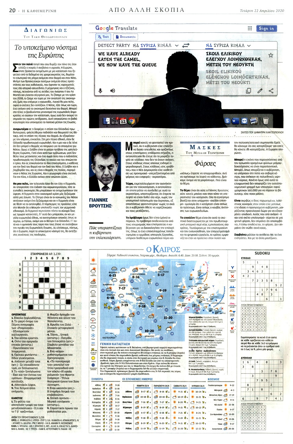 ΚΑΘΗΜΕΡΙΝΗ - 22 Απριλίου 2020