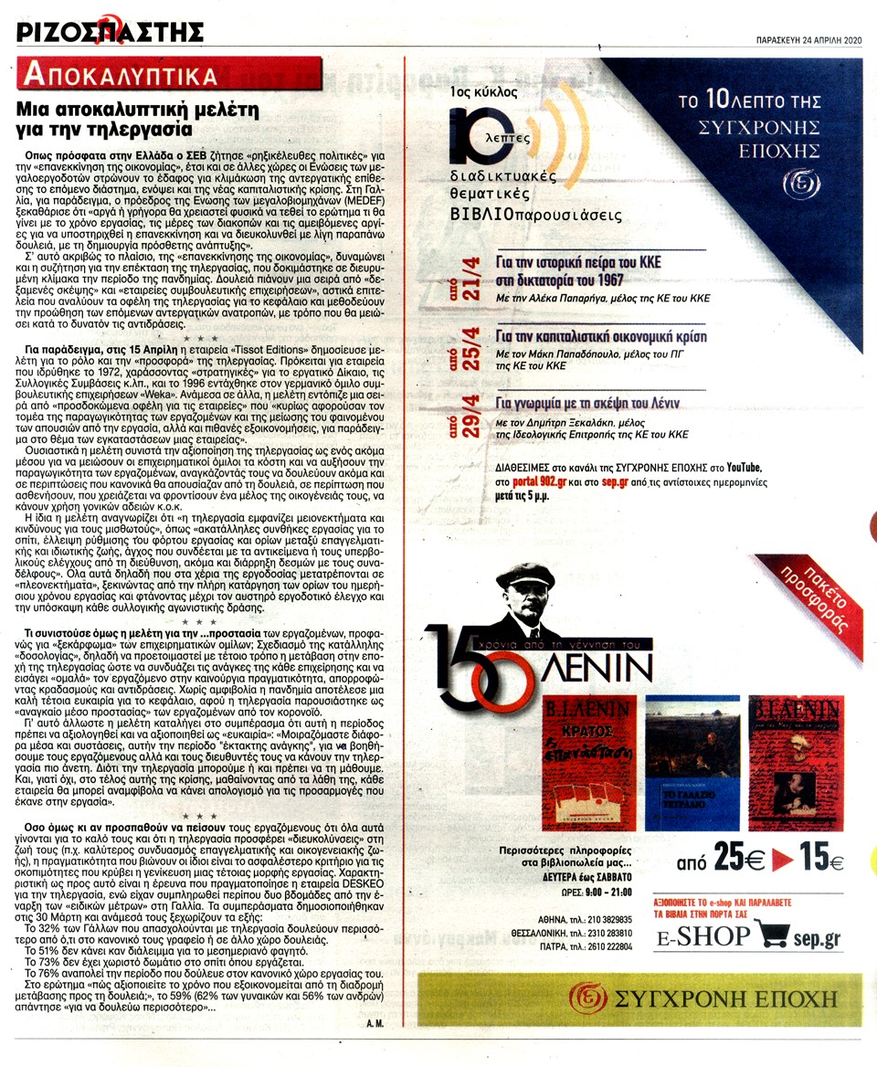 ΡΙΖΟΣΠΑΣΤΗΣ - 24 Απριλίου 2020